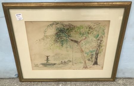 804 Robert Patterson Watercolor "Hill Top Veiw Memorial and Baot Lake"