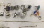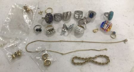 Collection of costume jewelry rings, earrings, bracelets, and necklace. Collection of costume jewelry rings, earrings, bracelets, and necklace.