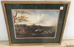 Framed Reproduction Print of Hunt Scene, age crackle designed, frame is 17"h., 21"w. Framed Reproduction Print of Hunt Scene, age crackle designed, frame is 17"h., 21"w.