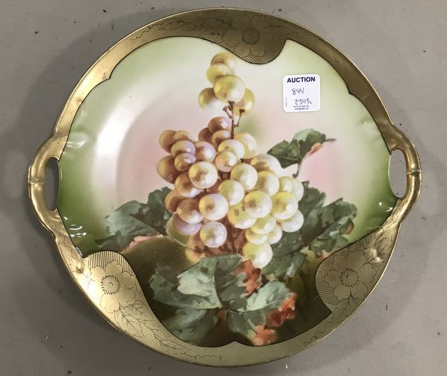 Bavaria Hand Painted Gold Gilt Plate, hand painted, marked, handled, grape artwork, 10"w. Bavaria Hand Painted Gold Gilt Plate, hand painted, marked, handled, grape artwork, 10"w.