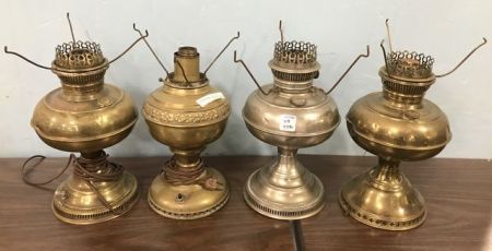 883 Four Vintage Brass and Copper Oil Lanterns