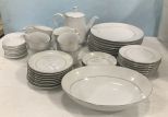 Crown Victoria "Lovelace" China, 8 saucers, 3 berry bowls, 8 dessert plates, 8 dinner plates, 8 cups, pitcher, gravy boat. Crown Victoria "Lovelace" China, 8 saucers, 3 berry bowls, 8 dessert plates, 8 dinner plates, 8 cups, pitcher, gravy boat.