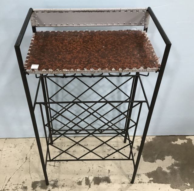 Modern Metal Wine Rack Stand, painted cardboard top, 36"h., 20"w., 12"d. Modern Metal Wine Rack Stand, painted cardboard top, 36"h., 20"w., 12"d.