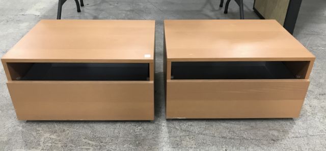 Pair of Mid Century Oriental Contributed Nightstands, one drawer, 14"h., 25"w., 18"d. Pair of Mid Century Oriental Contributed Nightstands, one drawer, 14"h., 25"w., 18"d.