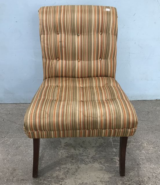 Modern Striped Side Chair, button back, has stains, 34"h. Modern Striped Side Chair, button back, has stains, 34"h.