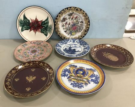 Seven Hand Painted Decor and Collectible Plates, Melinda 1998 Christmas plate, hand plated Oriental plate, Chinese hand painted birds and floral plate, Old Deft Holland plate, Chinese hand painted Medallion plate, hand painted pineapple plate and bug plate. Seven Hand Painted Decor and Collectible Plates, Melinda 1998 Christmas plate, hand plated Oriental plate, Chinese hand painted birds and floral plate, Old Deft Holland plate, Chinese hand painted Medallion plate, hand painted pineapple plate and bug plate.