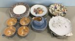 Assorted Collection of Collector Plates, set of luster ware saucers, cups, and creamer, lefton luncheon plates, Royal Danube plates, Pier 1 Madurai plates, and etc. Assorted Collection of Collector Plates, set of luster ware saucers, cups, and creamer, lefton luncheon plates, Royal Danube plates, Pier 1 Madurai plates, and etc.