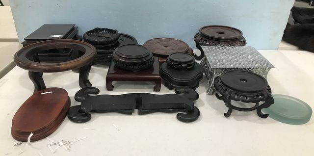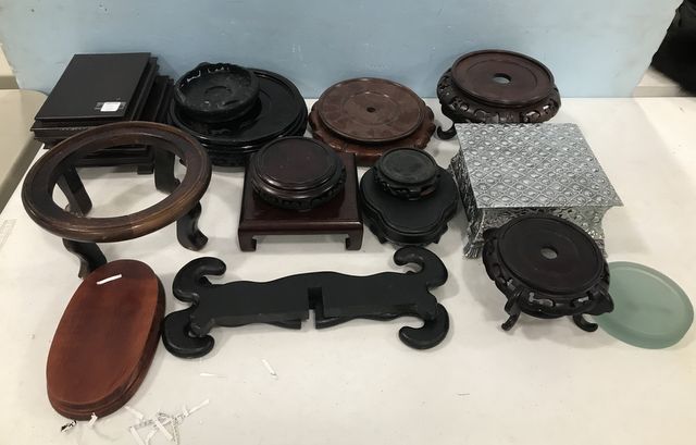 Group of Oriental Vase Stands, 15 total, assorted sized. Group of Oriental Vase Stands, 15 total, assorted sized.