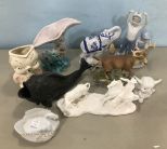 Paul Sebastian porcelain baseball players figure, elephant, Italy urn, deer figurine, Owl plant vase, fish decor, cowboy and cow, swan dish. Paul Sebastian porcelain baseball players figure, elephant, Italy urn, deer figurine, Owl plant vase, fish decor, cowboy and cow, swan dish.