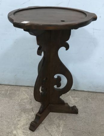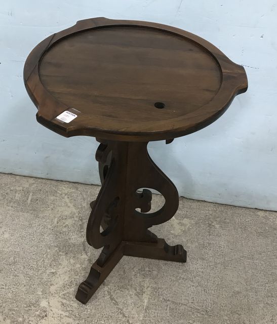 Vintage Walnut Pedestal Stand, missing marble lining, has repaired crack on edge, 25"h., 17"w. Vintage Walnut Pedestal Stand, missing marble lining, has repaired crack on edge, 25"h., 17"w.