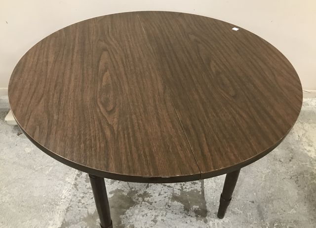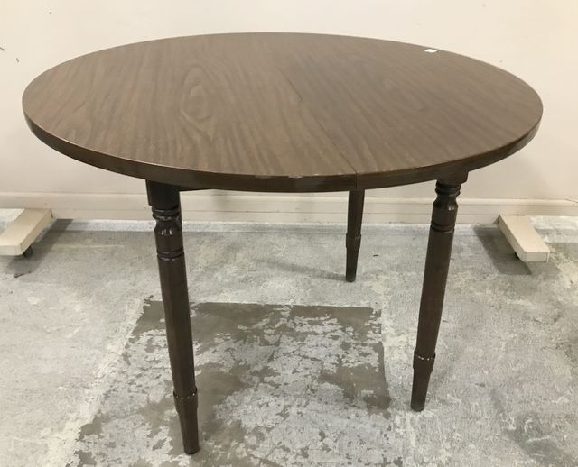 Modern round dining table with two leaves, four legs (removable), 30"h., 42"dia. Modern round dining table with two leaves, four legs (removable), 30"h., 42"dia.