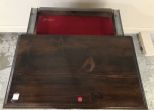 1980's Samuel Lawrence Stained Pine Nightstand, with slide out top with felt inside storage, two drawers (work good) needs some cleaning, 24"h., 27"w., 15"d. 1980's Samuel Lawrence Stained Pine Nightstand, with slide out top with felt inside storage, two drawers (work good) needs some cleaning, 24"h., 27"w., 15"d.