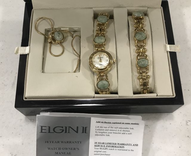 Elgin II jewelry set, watch, necklace, bracelet, in case. Elgin II jewelry set, watch, necklace, bracelet, in case.