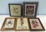 1214 Five Small Framed Needle Point Artwork
