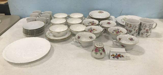Soup saucers and cups, mugs, Poland suacers and cups, card holder, salt shaker, small cups and saucers. Soup saucers and cups, mugs, Poland suacers and cups, card holder, salt shaker, small cups and saucers.