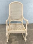 White Painted Caned Arm Chair Rocker, needs cleaning, 40"h. White Painted Caned Arm Chair Rocker, needs cleaning, 40"h.