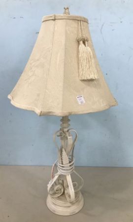 Modern Painted White Metal Table Lamp, with shade, 31"h. Modern Painted White Metal Table Lamp, with shade, 31"h.