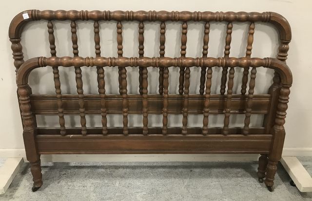 Double vintage spool bed, has finish wear, comes with rails. Double vintage spool bed, has finish wear, comes with rails.