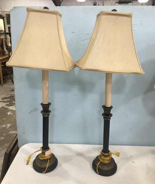 Pair of Modern Candlestick Table Lamps, with shades, 33"h. Pair of Modern Candlestick Table Lamps, with shades, 33"h.