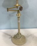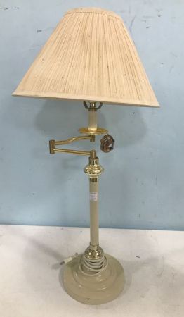 Modern White Swivel Table Lamp, white and brass lamp with worn shade, 31"h. Modern White Swivel Table Lamp, white and brass lamp with worn shade, 31"h.