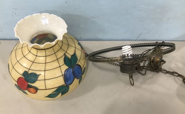 Vintage Hanging Hand Painted Globe Light Fixture, hand painted globe with fruit. Vintage Hanging Hand Painted Globe Light Fixture, hand painted globe with fruit.