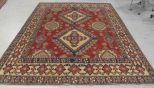 Handmade with wool, low pile, reds, blues, tans, 7'10 x 9'9 Handmade with wool, low pile, reds, blues, tans, 7'10 x 9'9
