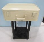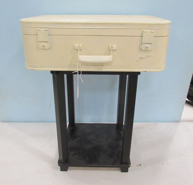Luggage with wood leg base, 27"h., 21"w. Luggage with wood leg base, 27"h., 21"w.