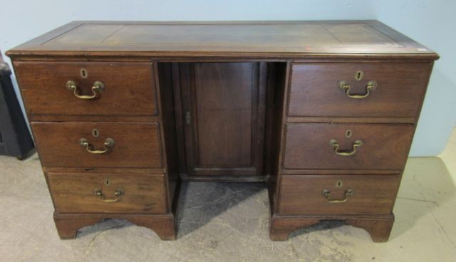 Leather top insert, 6 drawers, interior door, back has new panels, 32"h., 57"w., 23"d. Leather top insert, 6 drawers, interior door, back has new panels, 32"h., 57"w., 23"d.