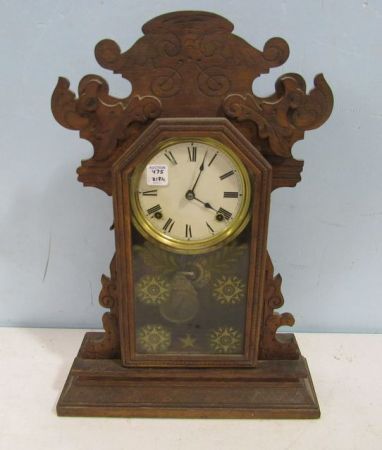 Has pendulum and key. 20"h., 13"w. Has pendulum and key. 20"h., 13"w.