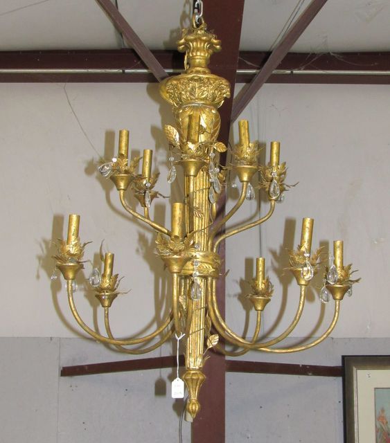 634 Gold Painted Italian 12 Arm Metal Chandelier