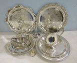 827 Group of Silver Plate Pitcher, Candleholders, and Serving Dishes