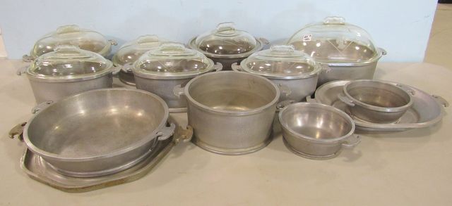 assorted sized aluminum pots with Knight Design Glass Lids. assorted sized aluminum pots with Knight Design Glass Lids.