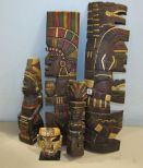 1020 Five Carved Tribal Wall Art and Tribal Mosiac Mask