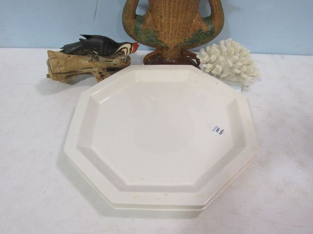 1084 Bird Design Basket Urn, Wood Pecker, Coral Reef Design, and Two Dinnerware