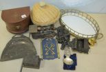 Mirrored tray, pottery shell dish, Stephen Grant London Ink Well, Brasil Souvenir Spoon, Cross Keys hotel emblem, Music Box, Banthrico Train Money bank, Mirrored tray, pottery shell dish, Stephen Grant London Ink Well, Brasil Souvenir Spoon, Cross Keys hotel emblem, Music Box, Banthrico Train Money bank,