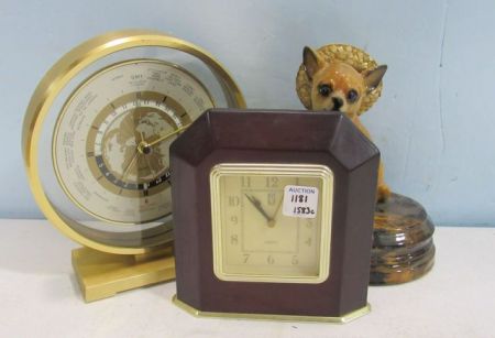 1181 GMT Reyk Javik London Clock, Paul Sebastian 1997 Clock, and Plastic Chihuagua Dog