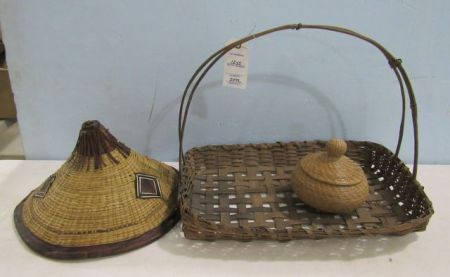 1255 Oak Woven Basket, Pine Straw Dish, and African Straw Hat