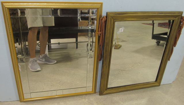 New, Gold Framed Mirror 31"h. 25", painted distressed frame mirror 29"h., 25"w. New, Gold Framed Mirror 31"h. 25", painted distressed frame mirror 29"h., 25"w.