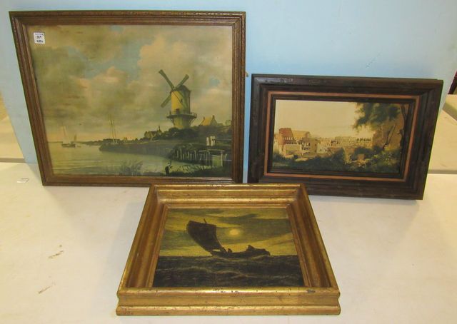 Print of Windmill on shore 22" x 18", Sailor on board 14"h x 16", City landscape on board 18"h x 12" Print of Windmill on shore 22" x 18", Sailor on board 14"h x 16", City landscape on board 18"h x 12"