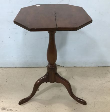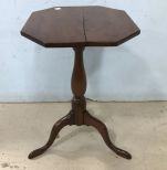Antique Walnut English Pedestal Table, polygon style top, three leg pedestal, has age split on top, sturdy, 26"h., 15"w Antique Walnut English Pedestal Table, polygon style top, three leg pedestal, has age split on top, sturdy, 26"h., 15"w