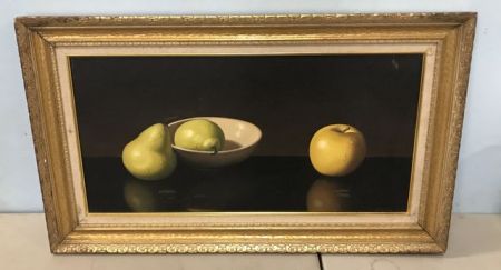 H. Alfred "Hal" Jackson "Still Life Pears and Apple" Painting, Texas African American Realism, 1940-2001, famous for his drops of moisture, studied art at the American Academy in Chicago, 12" x 24", frame is 17" x 29". H. Alfred "Hal" Jackson "Still Life Pears and Apple" Painting, Texas African American Realism, 1940-2001, famous for his drops of moisture, studied art at the American Academy in Chicago, 12" x 24", frame is 17" x 29".