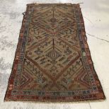 Vintage Low Pile Persian Area Rug, has age wear, slight fade, 3'3 x 5'11. Colors will likely look lighter in the photograph. Vintage Low Pile Persian Area Rug, has age wear, slight fade, 3'3 x 5'11. Colors will likely look lighter in the photograph.