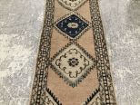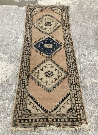 Small hand woven runner, has light wear, 4'11., 1'9. Colors will likely look lighter in the photograph. Small hand woven runner, has light wear, 4'11., 1'9. Colors will likely look lighter in the photograph.