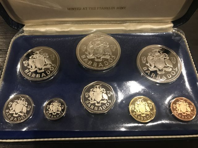First National Coinage of Barbados Proof Set, minted at Franklin Mint, in case. First National Coinage of Barbados Proof Set, minted at Franklin Mint, in case.