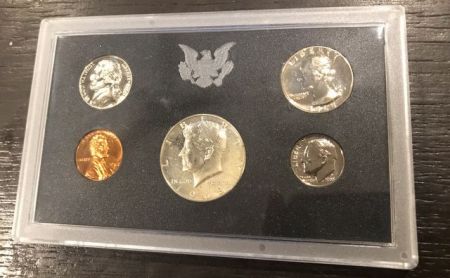 United States Proof Set 1968, Kennedy Half Dollar, Washington Quarter, Roosevelt dime, Jefferson Nickel, Lincoln penny, S mark, hard plastic mint holder. United States Proof Set 1968, Kennedy Half Dollar, Washington Quarter, Roosevelt dime, Jefferson Nickel, Lincoln penny, S mark, hard plastic mint holder.