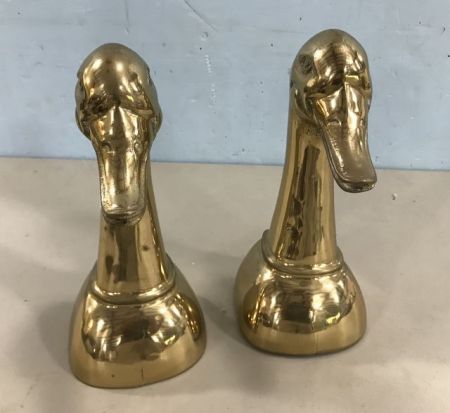 Pair of Brass Geese Head Bookends, 10"h. Pair of Brass Geese Head Bookends, 10"h.