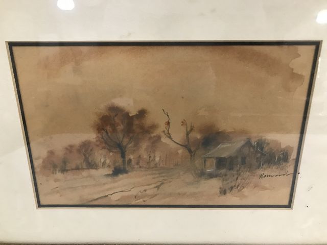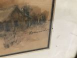 Vintage Signed Watercolor of Home Place, matted, framed, 18"h., 12"w. Vintage Signed Watercolor of Home Place, matted, framed, 18"h., 12"w.