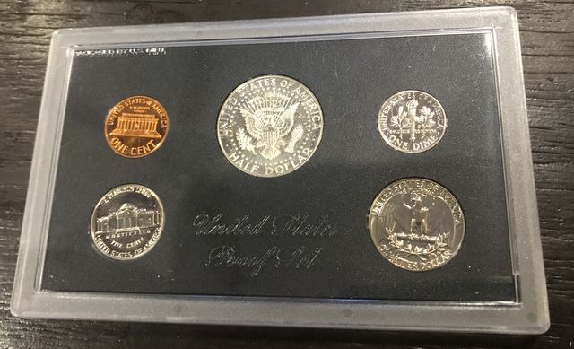 United States Proof Set 1968, Kennedy Half Dollar, Washington Quarter, Roosevelt dime, Jefferson Nickel, Lincoln penny, S mark, hard plastic mint holder. United States Proof Set 1968, Kennedy Half Dollar, Washington Quarter, Roosevelt dime, Jefferson Nickel, Lincoln penny, S mark, hard plastic mint holder.