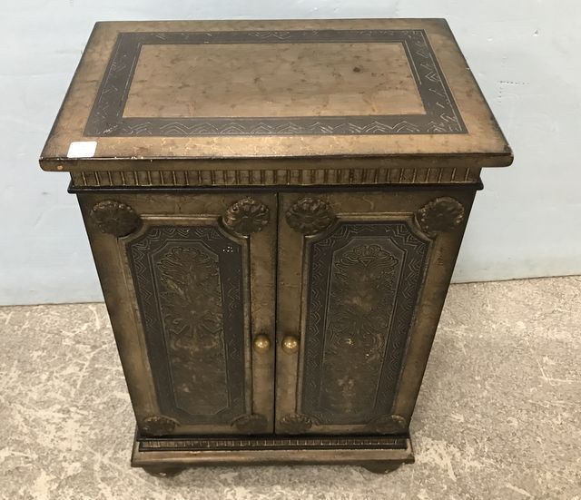 Modern Italian Style Commode, factory finish, double door, missing shelf, 26"h., 18"w., 12"d. Modern Italian Style Commode, factory finish, double door, missing shelf, 26"h., 18"w., 12"d.