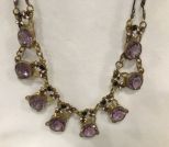 595 Vintage (c. 1910) Art Nouveau Amethyst Glass & Brass Necklace